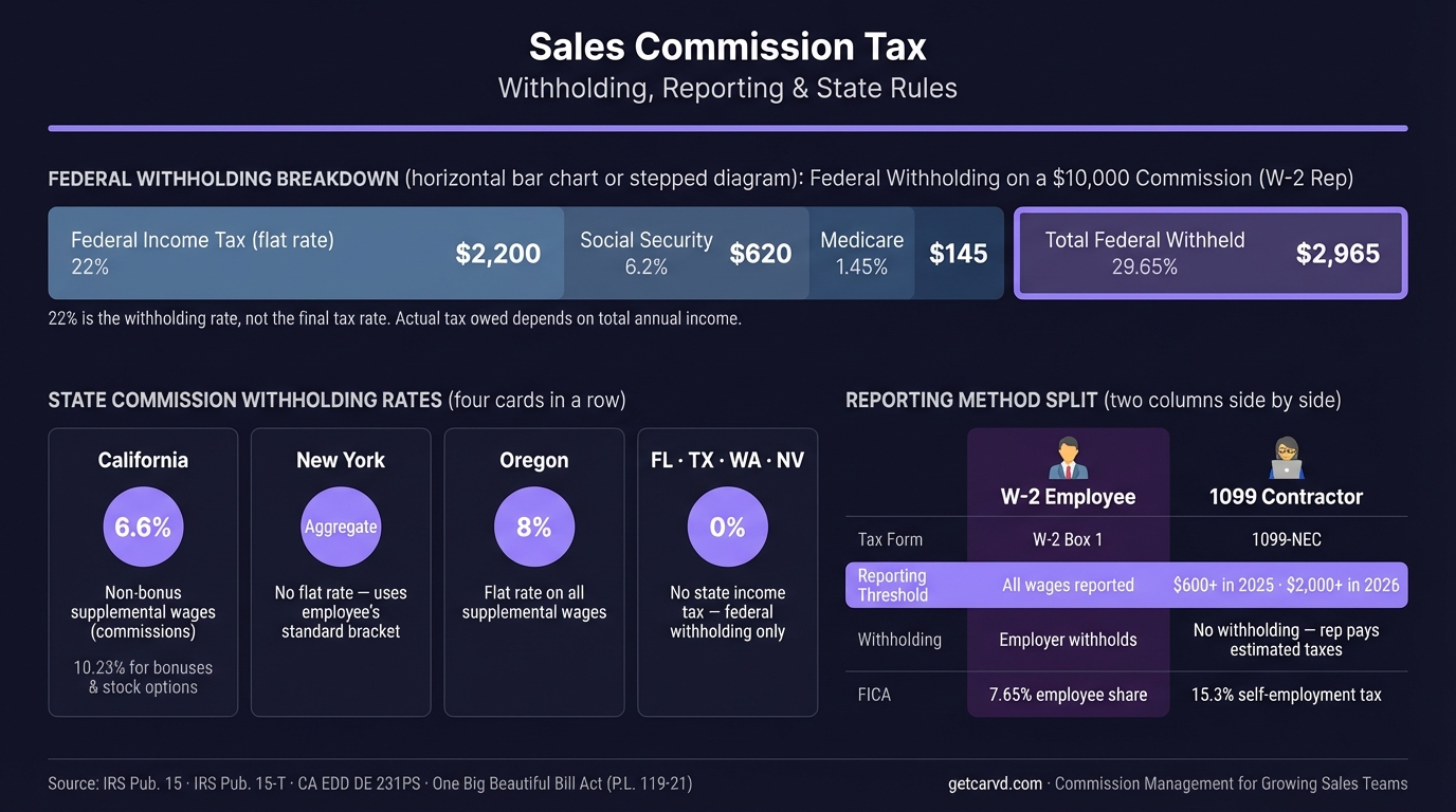 This covers the employer and finance team perspective. If you're a rep trying to understand what will come out of your check, see commission tax rate and is commission taxed differently. For the full picture on commission taxation, see how are commissions taxed.