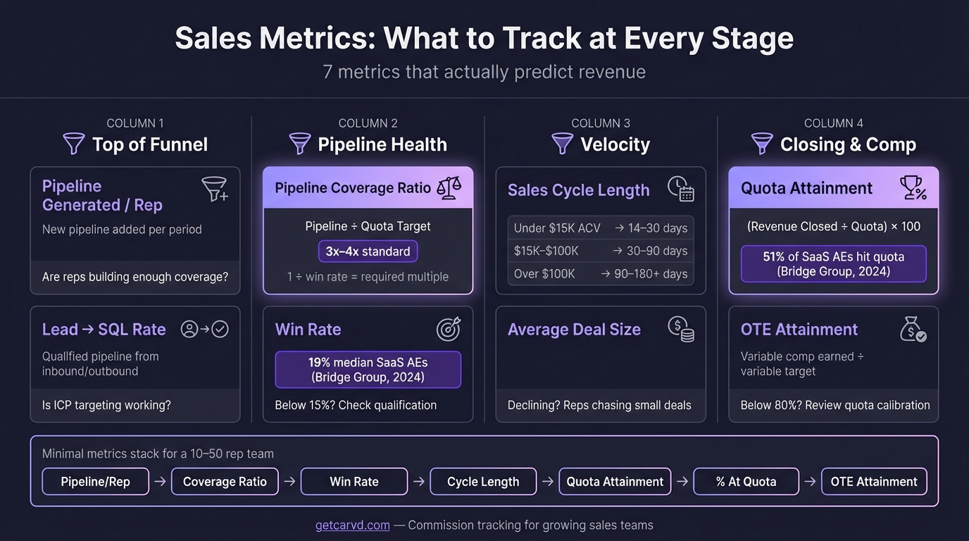 This guide covers the metrics that matter at each stage of the funnel, including the ones most sales ops teams neglect: the numbers that reveal whether your commission process is functioning or quietly eroding rep trust.