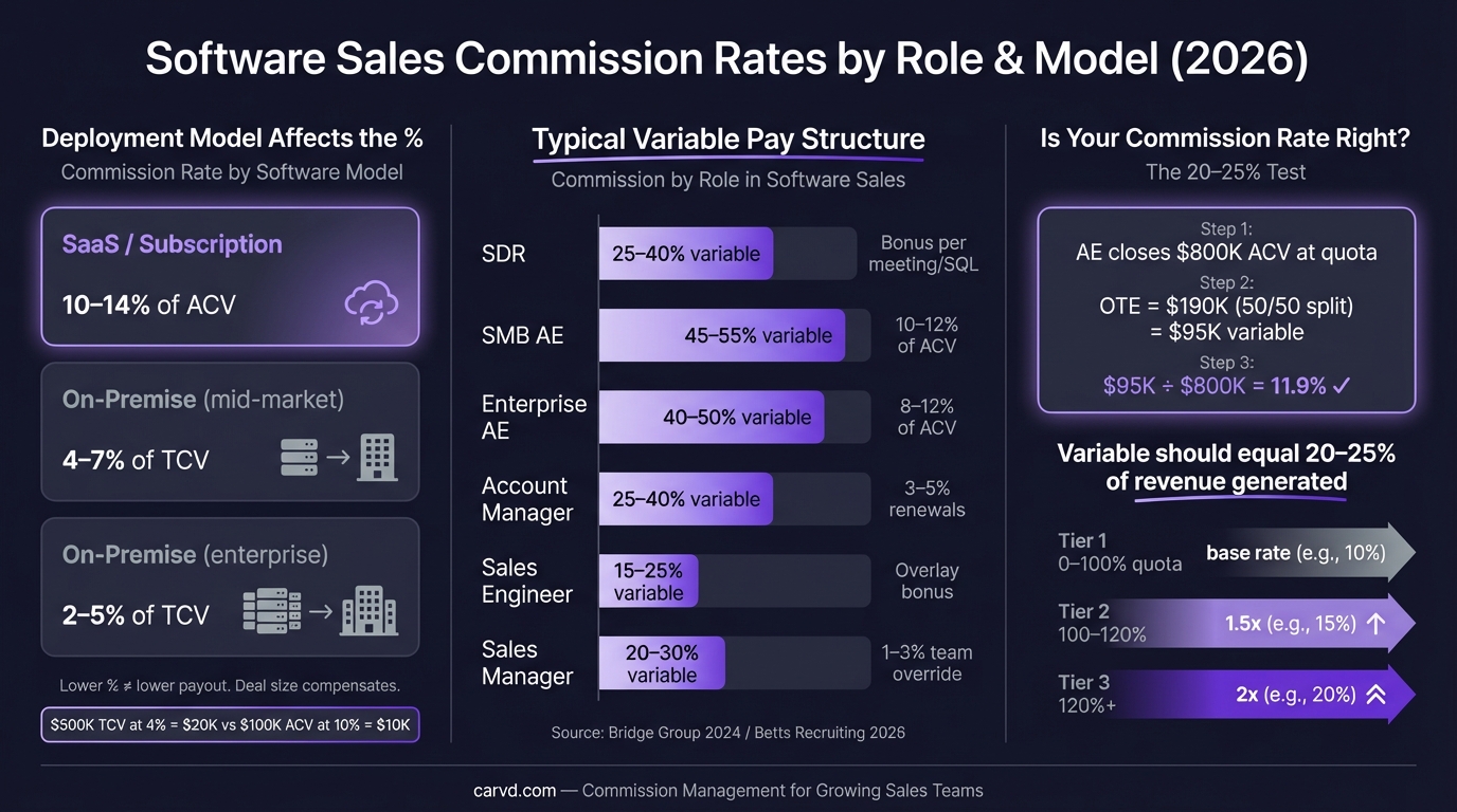 For SaaS-specific benchmarks in more depth, see SaaS sales commission rates: what's standard in 2026.